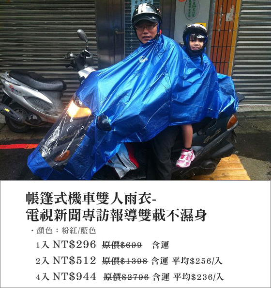 帳篷式機車雙人雨衣-電視新聞專訪報導雙載不濕身"